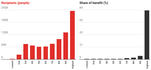 Around 83% of the benefit went to those earning the largest incomes.